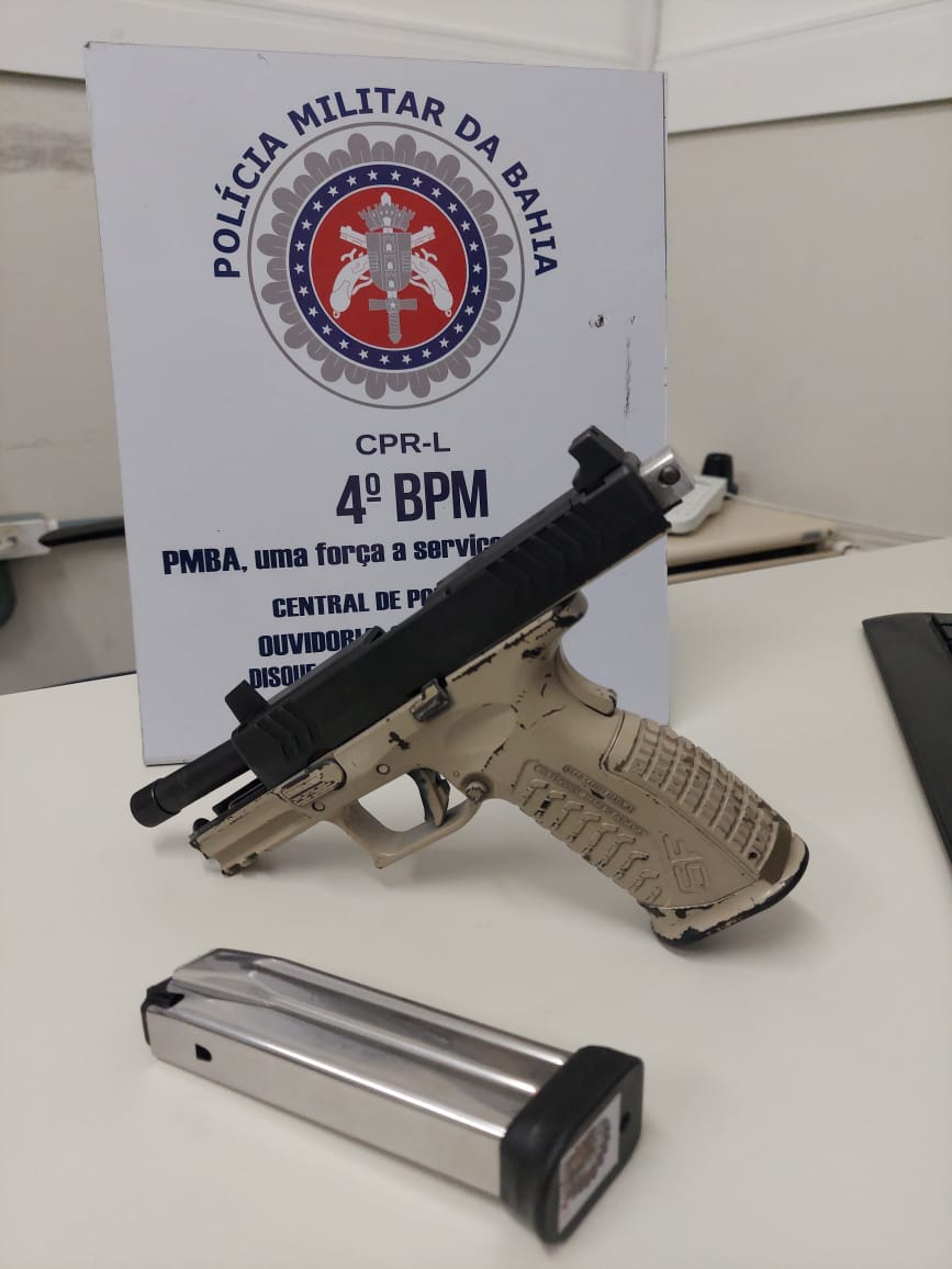 Em Alagoinhas, policiais do Quarto Batalhão cumprem mandado de prisão e apreendem arma de fogo.