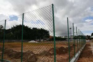 Em fase final da obra, que teve quase 2 milhões investidos, nesta quarta-feira (26) foram feitas a instalação do alambrado, das tampas do tanque séptico e das caixas de passagem, pintura da mureta do alambrado e aterro manual de vigas baldrame da quadra coberta.