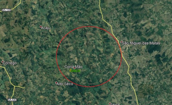 Área em que o tremor foi registrado, na cidade de Amargosa, na noite de sábado (5) — Foto: Divulgação/ Laboratório Sismológico (LabSis) da Universidade Federal do Rio Grande do Norte (UFRN)