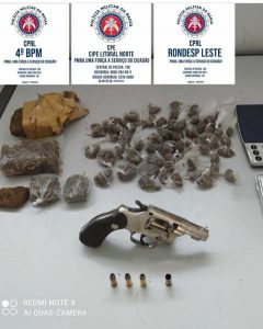 Dessa forma, na ação, os policiais da RONDESP conseguiram apreender vários objetos ilícitos, dentre os quais um revólver de marca Taurus Cal.38, com seis munições de mesmo calibre; um revólver, Cal. 38, da marca Rossi, com cinco munições de Cal. 38; 42(quarenta e duas) porções pequenas de substância análoga a maconha; dois rádios comunicadores; duas fardas camufladas no padrão utilizado pelo Exército; além de três smartphones.