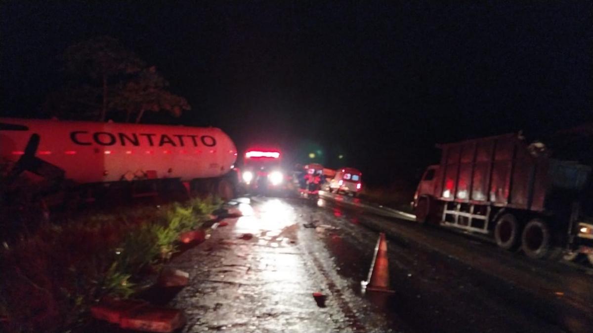 A colisão entre as carretas tanque ocorreu na noite desta terça-feira
