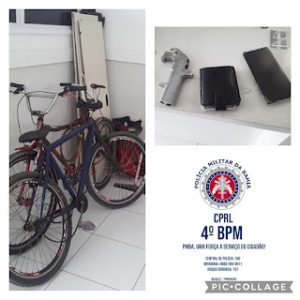 O acusado foi alvejado na perna por um autor desconhecido e, com ele foi encontrado o material roubado, bicicleta, carteira é um simulacro de arma de fogo, que era utilizado nos roubos.