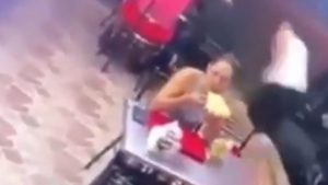 A cena mostra um casal sentado à mesa comendo, quando dois homens possivelmente armados chegam no local e anunciam o assalto. O homem que acompanha a namorada sai correndo, deixando a mulher para trás e sozinha (veja vídeo abaixo).