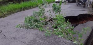 Passé: Pista cede e cratera impede passagem de veículos próximo em trecho da BR-100