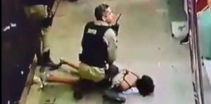 Dois policiais militares de Itabira, no interior de Minas Gerais, abordaram com violência uma mulher com um bebê no colo na noite desta sexta-feira (5), no centro da cidade. A mulher, que não teve o nome divulgado, foi derrubada e imobilizada com o joelho de um dos PMs no pescoço, apesar de segurar o bebê.