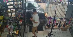 Carro invade loja e quase atinge funcionário; veja vídeo