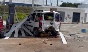 Um cilindro de Gás Natural Veicular (GNV) estourou no fim da manhã desta sexta-feira (26), no fundo de um carro, durante o abastecimento. Com o impacto da explosão, parte do teto do posto cedeu. O acidente aconteceu em Simões Filho, Região Metropolitana de Salvador.