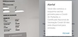 No sistema municipal de comprovação de imunização, a Carteira de Vacinação Digital (CVD), as injeções contra o coronavírus tomadas por Ícaro aparecem normalmente. O serviço, porém, não disponibiliza a opção traduzida.