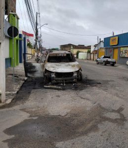 Os bombeiros foram acionados para debelar as chamas, mas, quando chegaram até o local, o fogo já havia consumido todo o automóvel.