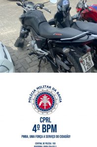 Na manhã desta quinta-feira (09), policiais do Quarto Batalhão recuperaram motocicleta que havia sido roubada por criminosos armados no bairro Mangalô, nas proximidades de uma fábrica de cerveja.