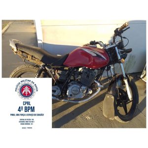 Em seguida, ainda na mesma situação, foi feita a apresentação do veículo roubado que foi deixado pelo criminoso no local. Trata-se de uma motocicleta JTA/SUZUKI EN 125 YES, que foi apresentada à Delegacia Territorial de Alagoinhas, conforme número de ocorrência 32215/2022.