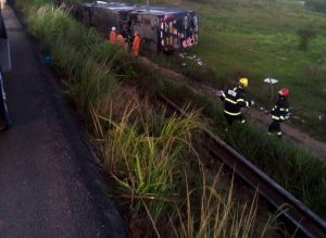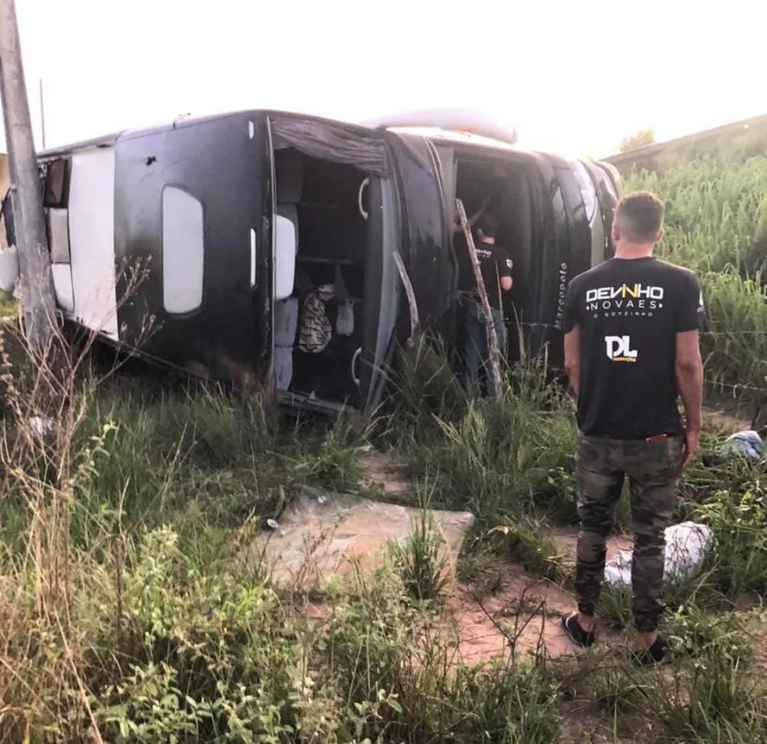 Ônibus do cantor Devinho Novaes tomba na BR-101; veja fotos