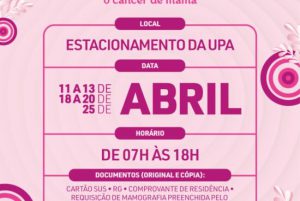 A unidade móvel estará no município de 11 a 13 de abril, de 18 a 20 de abril e no dia 25 de abril. Estão previstos acolhimentos de cerca de 75 mulheres por turno, com base nos critérios do Ministério da Saúde.