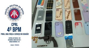 Um homem, acusado de participar do roubo, também foi preso em flagrante delito. Na ação, foi apreendido um Revólver, Cal. 32, com marca suprimida; 11 capas de celulares; um Readmi 9A; iPhone 6s; IPhone 8 Plus; iPhone XR; Samsung J4; Samsung A1. O fato foi registrado na Delegacia Territorial de Alagoinhas, sob Ocorrência nº 294670/2022.