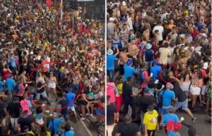 A frase “Carnaval de Salvador é para os fortes” é uma das corriqueiras anualmente na capital baiana. Reflexo disso é o que aconteceu, neste sábado (10/2), durante o desfile da banda Parangolé no circuito Dodô (Barra/Ondina). Enquanto a pipoca fervia em um trecho do trajeto, alguns foliões protagonizaram uma briga generalizada.