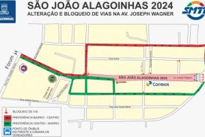 A Superintendência Municipal de Transporte e Trânsito (SMTT) informa que, devido à montagem do palco do Circuito Oficial do São João, na avenida Joseph Wagner, foi necessário fazer um alteração no tráfego da região.